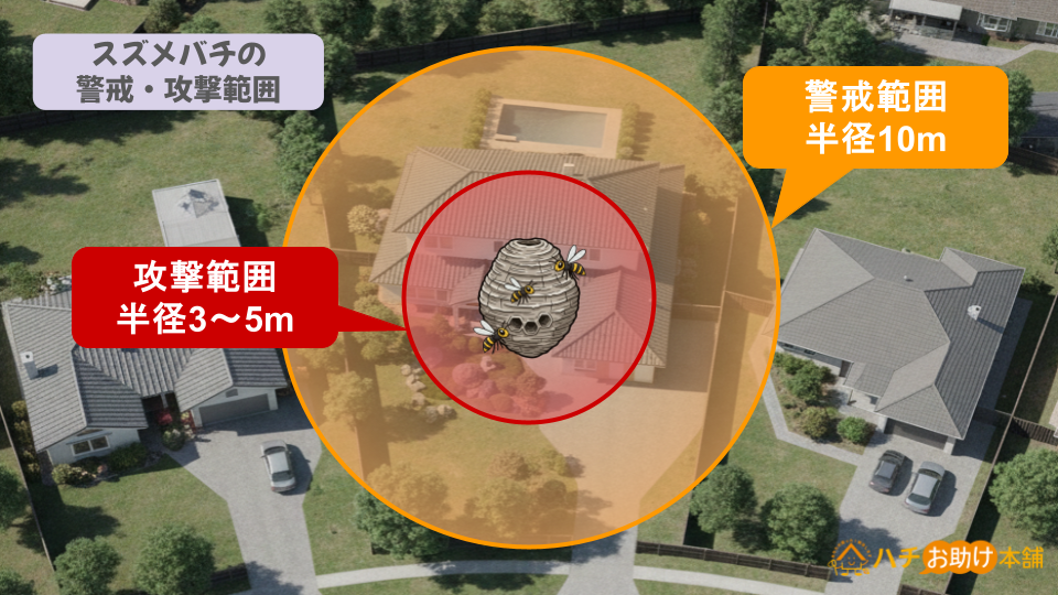 スズメバチの行動範囲と警戒範囲は異なる
