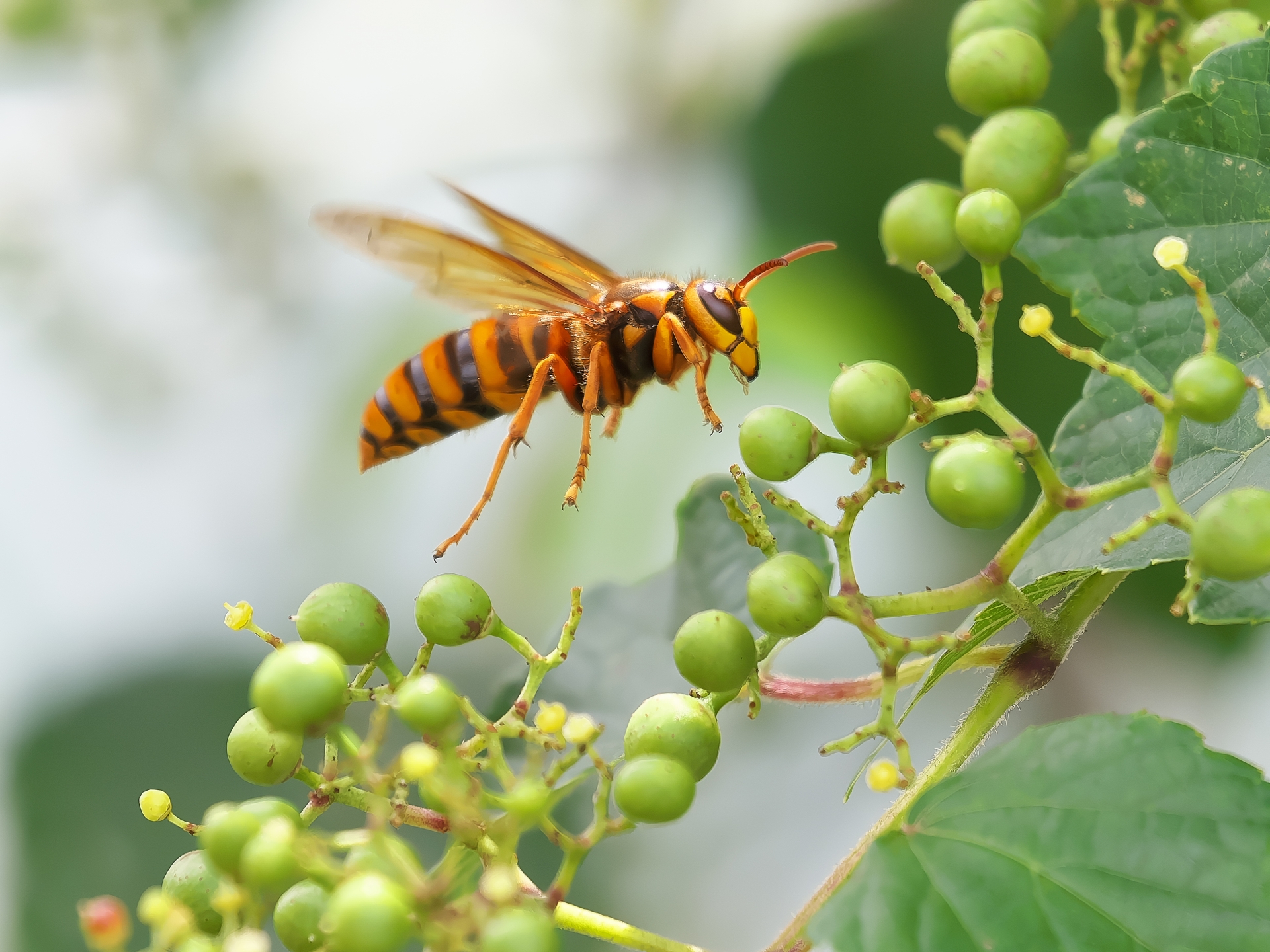警戒範囲が広いキイロスズメバチ