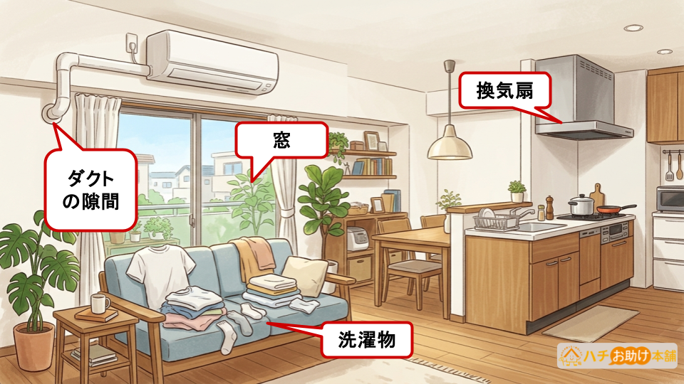 スズメバチが部屋に入って来る経路にはいくつかの候補があります。再発を防止するためにも、侵入経路をおさえておきましょう。