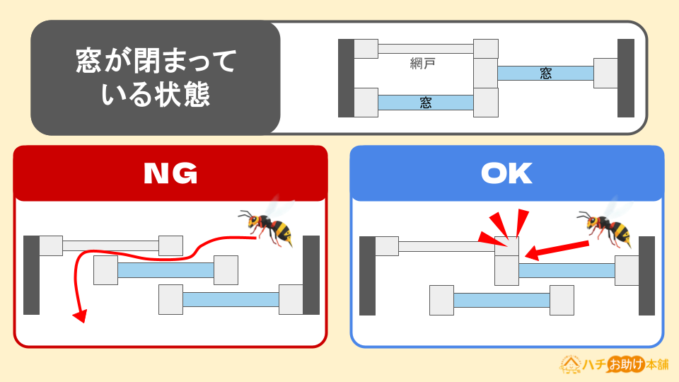 スズメバチが部屋に入ってきた瞬間にとるべき行動