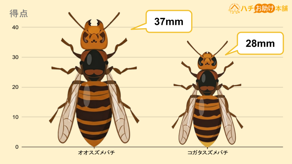| オオスズメバチのサイズ | コガタスズメバチのサイズ |