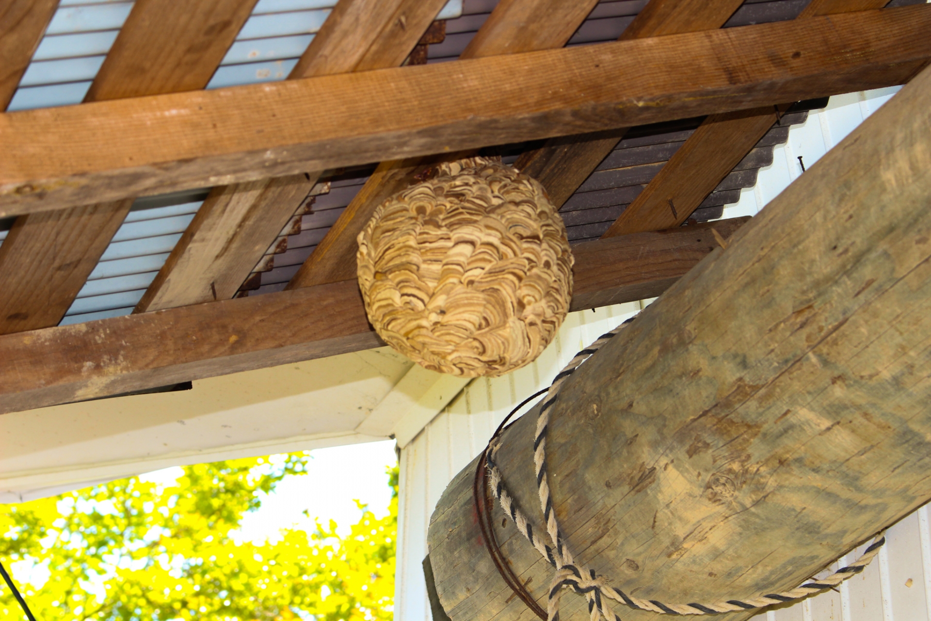 自宅の敷地内で音がした場合は、軒下や樹上などに巣がある可能性が考えられます。まずは室内に避難し、窓越しに蜂の様子を観察してみてください。