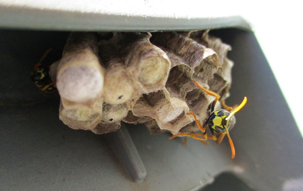 また、アシナガバチの女王蜂が冬眠から目覚めて営巣を開始する4~5月は、エアコンを使用している家庭が少ないというのも、営巣される理由のひとつです。
