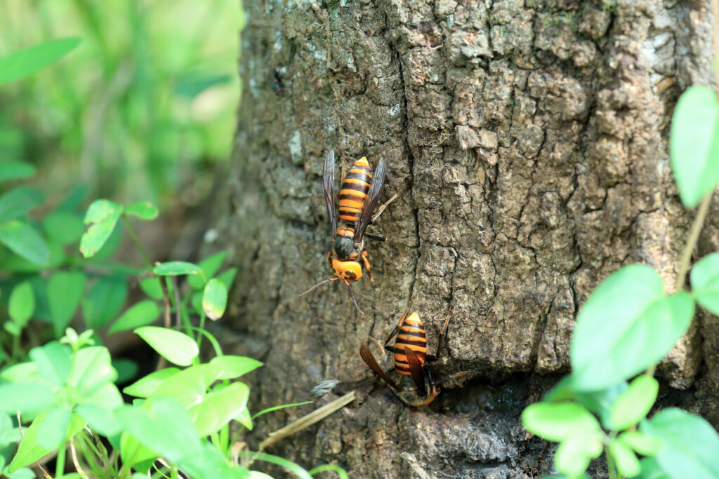 働き蜂は女王蜂よりも攻撃的なので、スズメバチによる刺傷事故が増えてくる時期でもあります。とくに巣の周辺は要注意です。